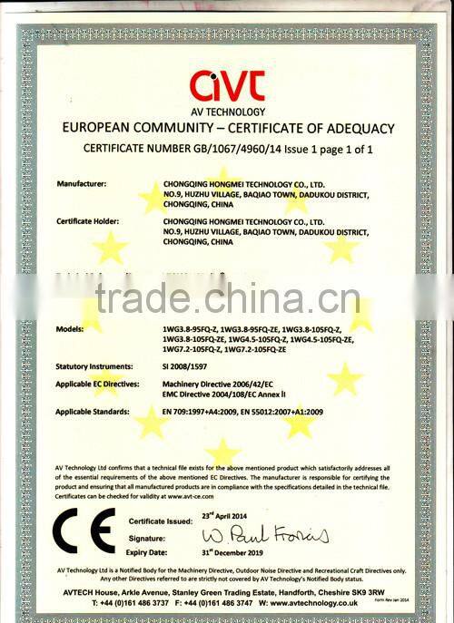 Chongqing Hongmei Technology Co., Ltd. is located in Chongqing City, China, where the economy of the society is prosperous, the scenery is beautiful and the transportation is convenient. We specialize in manufacturing various kinds of gasoline engines, generators, water pumps, jointing machines, high-pressure washers, power sprayers and all kinds of gardening machines. Our company covers an area of 50,000 square metres within a building area of 40,000 square metres. In Hongmei Company, there are 400 employees including 30 engineers and technicians. We can produce with buyer's OEM orders.